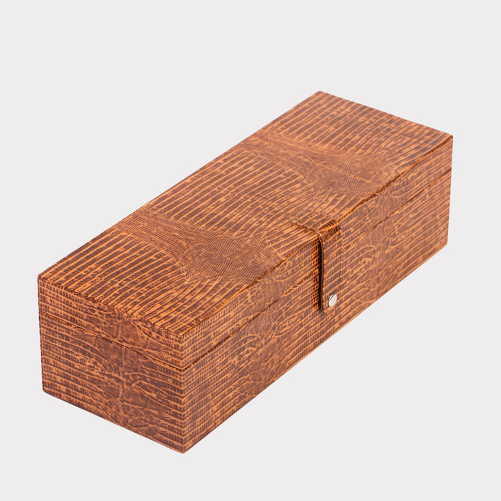 - Colour Options: Brown Croco Leather, Tan Lizzard Leather
