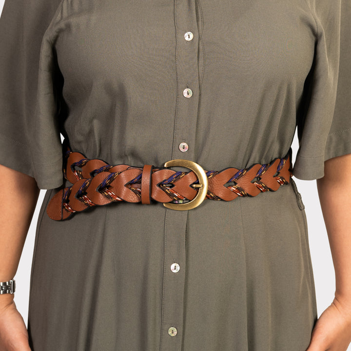 Tan leather and Dori Woven Ladies Belt